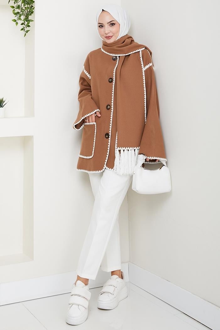 Ahen Atkılı Kaşe Ceket 1593 - Açık Kahve (CDILK0ANT1593-Açık Kahve)