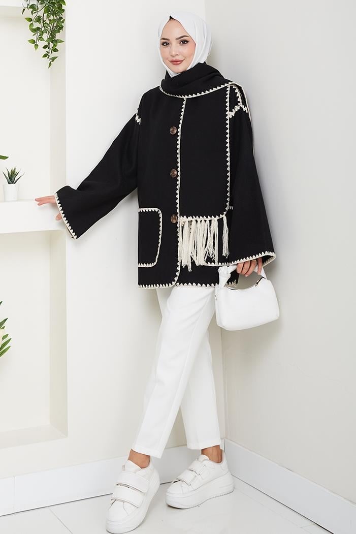 Ahen Atkılı Kaşe Ceket 1593 - Siyah (CDILK0ANT1593-Siyah)
