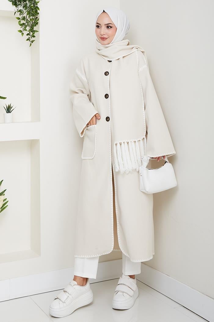 Arlin Atkılı Kaşe Uzun Ceket 1591 - Bej (CDILK0ANT1591-Bej)