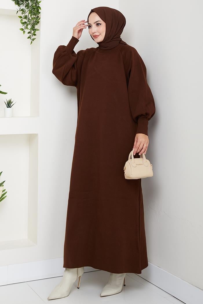 Balon Kol Triko Elbise 1600 - Acı Kahve