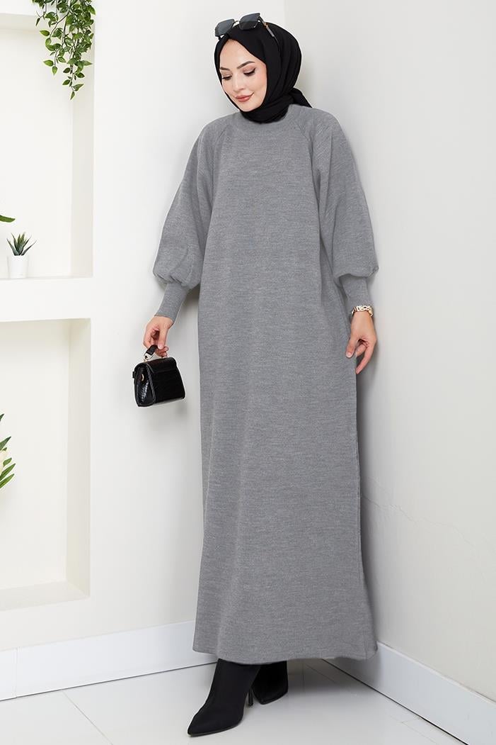 Balon Kol Triko Elbise 1600 - Gri (CDILK00RFM1600-Gri)