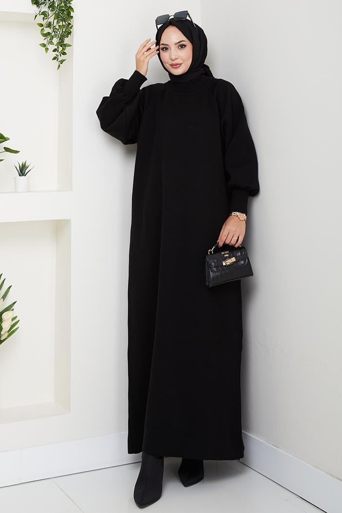 Balon Kol Triko Elbise 1600 - Siyah (CDILK00RFM1600-Siyah)