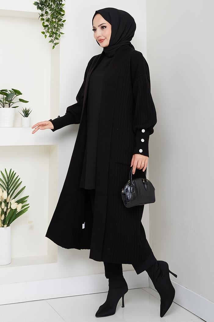 Balon Kol Triko Hırka 1613 - Siyah
