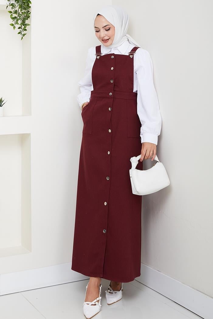 Boydan Düğmeli Gabardin Jile 1552 - Bordo (CDILK0AZR1552-Bordo)