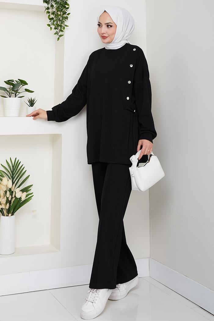Çıtçıt Detaylı Oysho İkili Takım 1624 - Siyah (CDILK0ANT1624-Siyah)