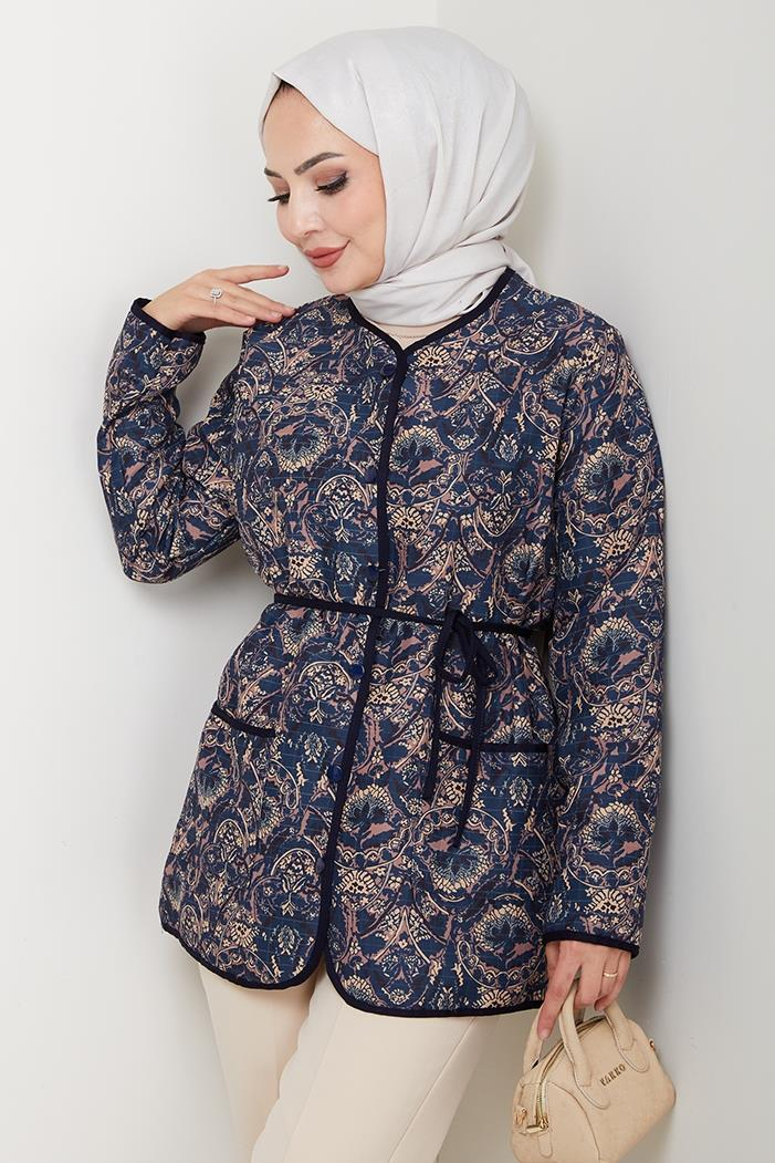 Desenli Düğmeli Kapitone Ceket 1620 - Lacivert