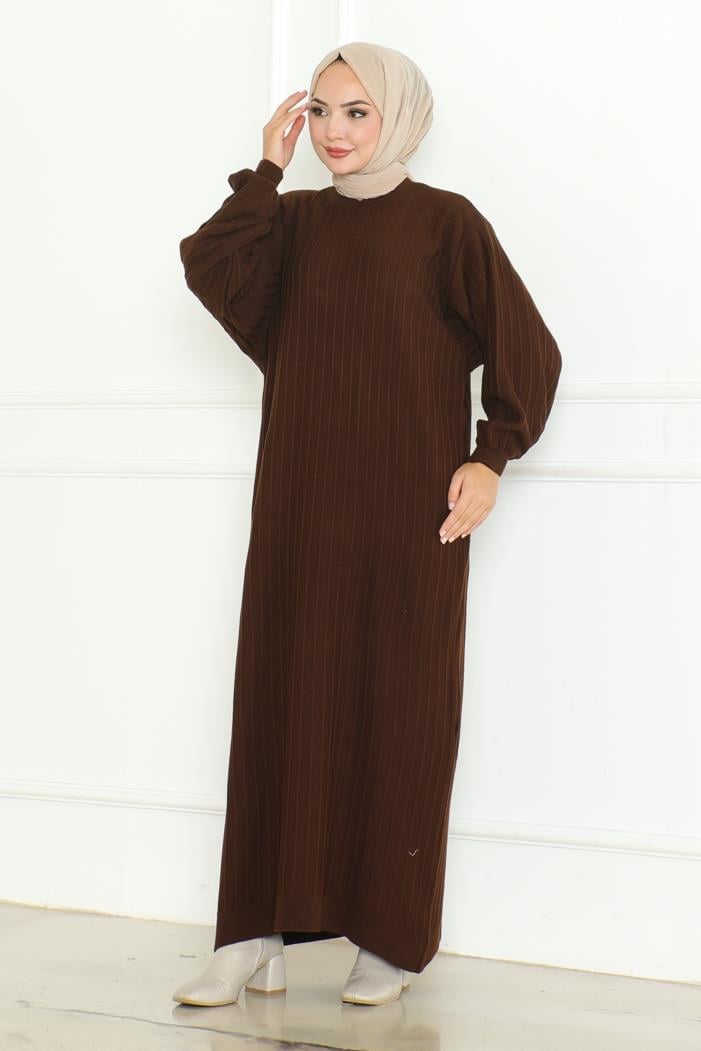 Diyel Balon Kol Triko Elbise 1127 - Acı Kahve (CDILK00RFM1127-Acı Kahve)