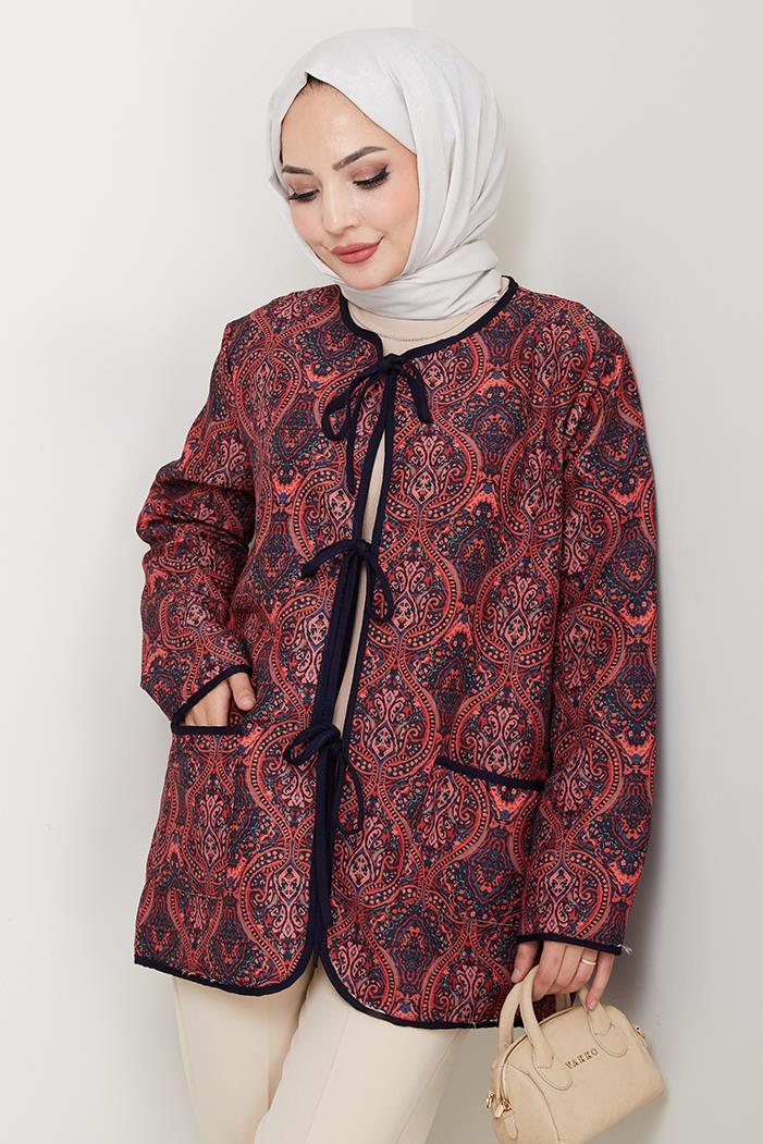 Etnik Desen Bağlamalı Kapitone Ceket 1618 - Bordo (CDILK00EFL1618-Bordo)