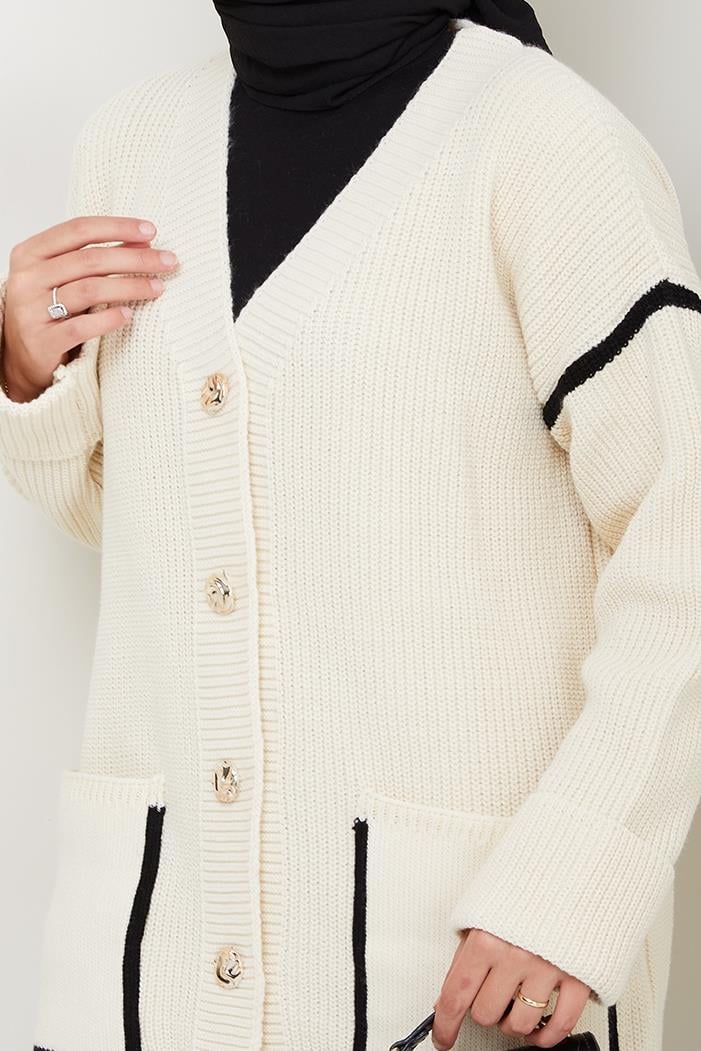 İlge Düğmeli Triko Hırka 1597 - Ekru (CDILK00RFM1597-Ekru)