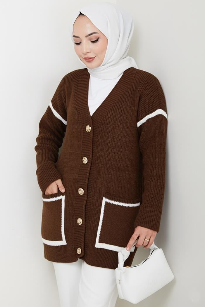 İlge Düğmeli Triko Hırka 1597 - Kahve