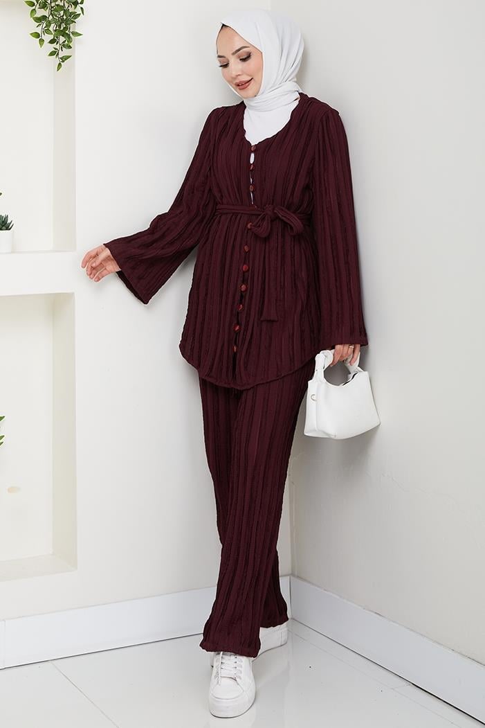 İlgen Fırfırlı İkili Takım 1610 - Mürdüm (CDILK00EFL1610-Mürdüm)