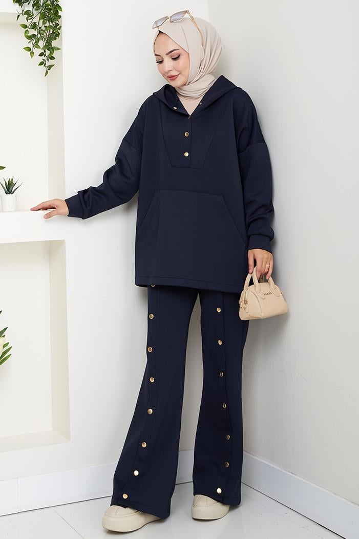 Kapüşonlu Düğme Detaylı Scuba Takım 1592 - Lacivert