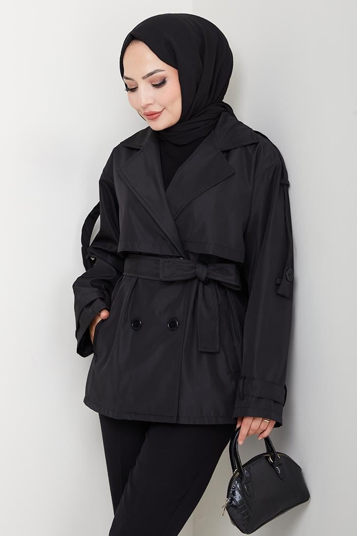 Nehar Rüzgarlıklı Astarlı Trenç 1621 - Siyah
