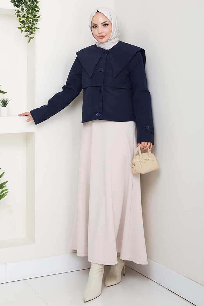Pelerin Görünüm Astarlı Trenç 1625 - Lacivert (CDILK0ANT1625-Lacivert)