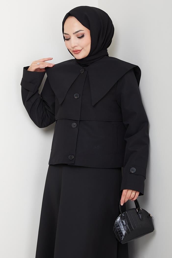Pelerin Görünüm Astarlı Trenç 1625 - Siyah