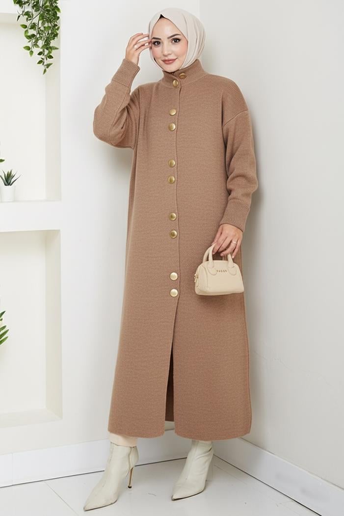 Reha Düğmeli Triko Hırka 1603 - Açık Kahve (CDILK00RFM1603-Açık Kahve)