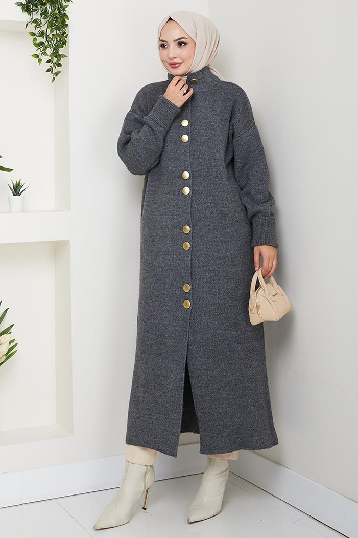 Reha Düğmeli Triko Hırka 1603 - Antrasit (CDILK00RFM1603-Antrasit)
