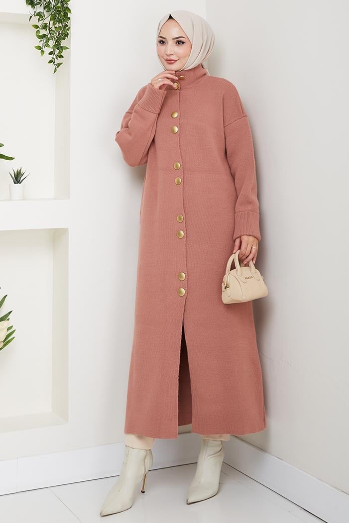 Reha Düğmeli Triko Hırka 1603 - Gül Kurusu