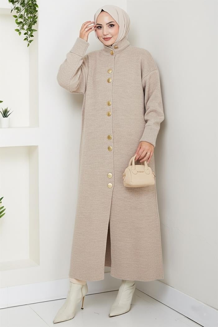 Reha Düğmeli Triko Hırka 1603 - Taş (CDILK00RFM1603-Taş)