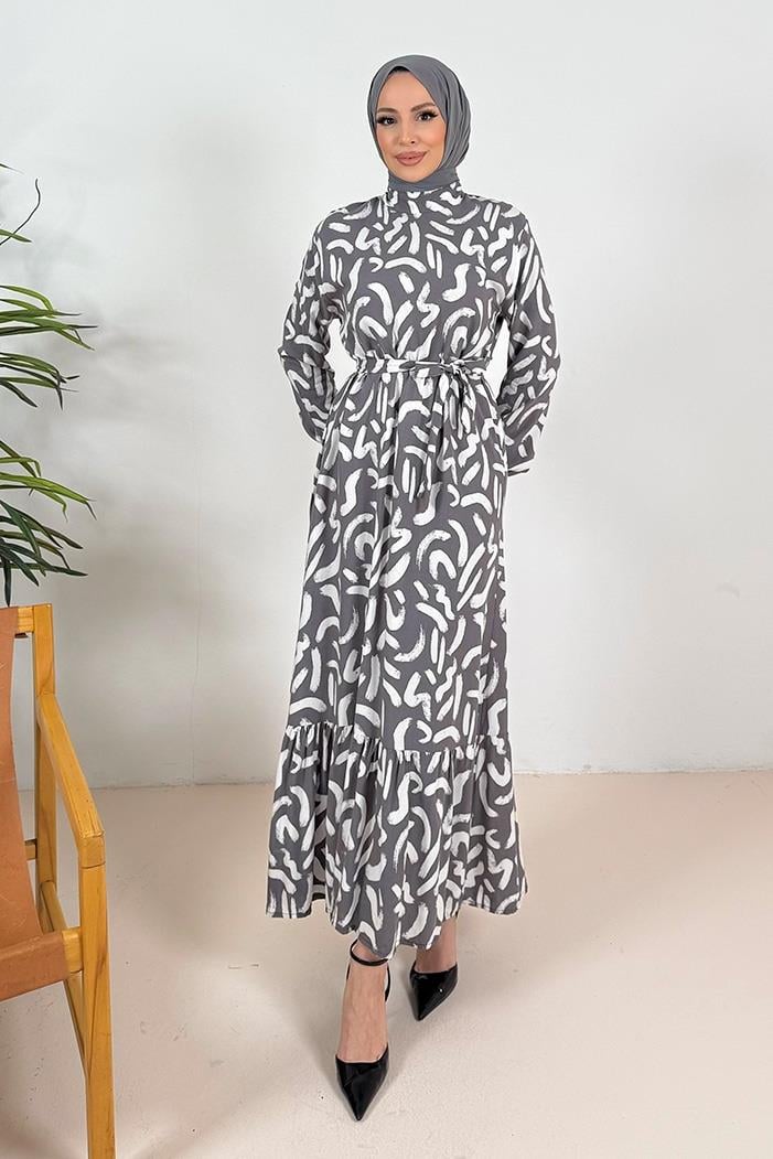 Virel Dokuma Viskon Elbise 1359 - Gri